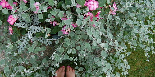 I hand sewed them and then just added a pink silk ribbon for that “little extra”. She likes them and tried to “catch” a dragon fly when I took this photo.