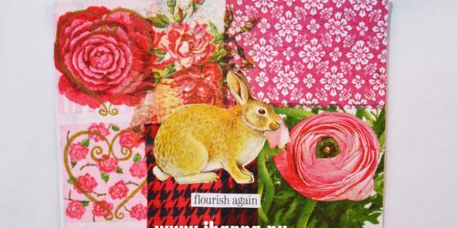 I saw the beginnings of the postcard, because we had a crafternoon together in my studio, where mom started by painting the postcard foundation. She used acrylic paints and painted with one of our favorite methods of painting, something she too has fallen in love with…