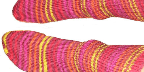 Colorway: Mostly magenta pink, sunshine yellow, some green and a bit of kool aided apricots too