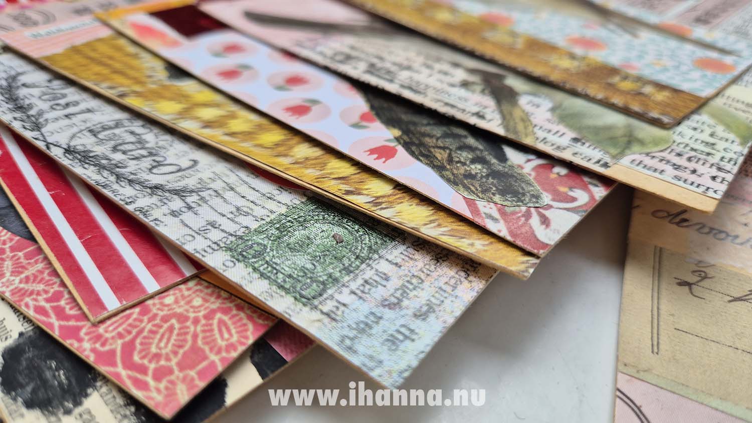 One evening as I could not stop listening to the audio book I was reading at the time (which was the wonderful Where the Forest Meets the Stars by Glendy Vanderah, partly about a woman doing research on bird’s nesting habits) I sat in the sofa with a bunch of book pages and cut out birds and other animals. Fussy cutting out images is time-consuming but calming when you have the time to do it without rush. I have lots of this kind of older book pages but rarely take the time to sit with them for a longer period of time, but now that I have started I really want to continue. If I don’t use the images at once I’ll just add them to a folder of fussy cut critters for later collage work.